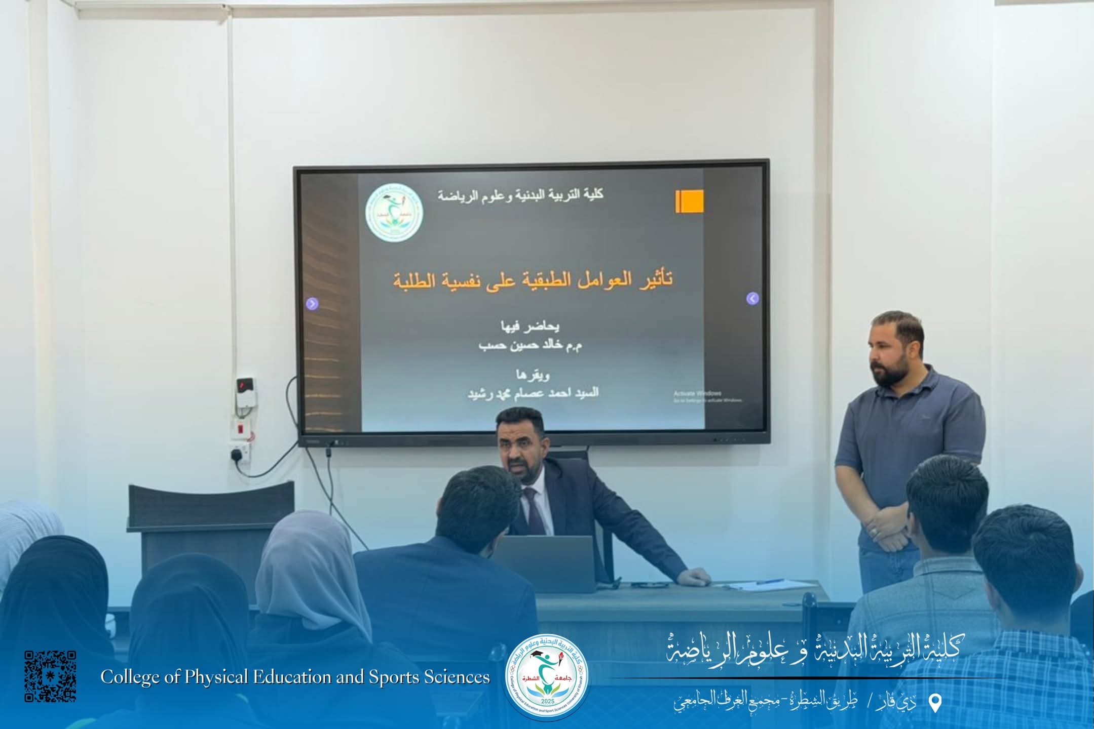 كلية التربية البدنية وعلوم الرياضة تقيم ورشة عمل حول تأثير العوامل الطبقية في نفسية الطلبة ضمن أسبوع الإرشاد النفسي الجامعي