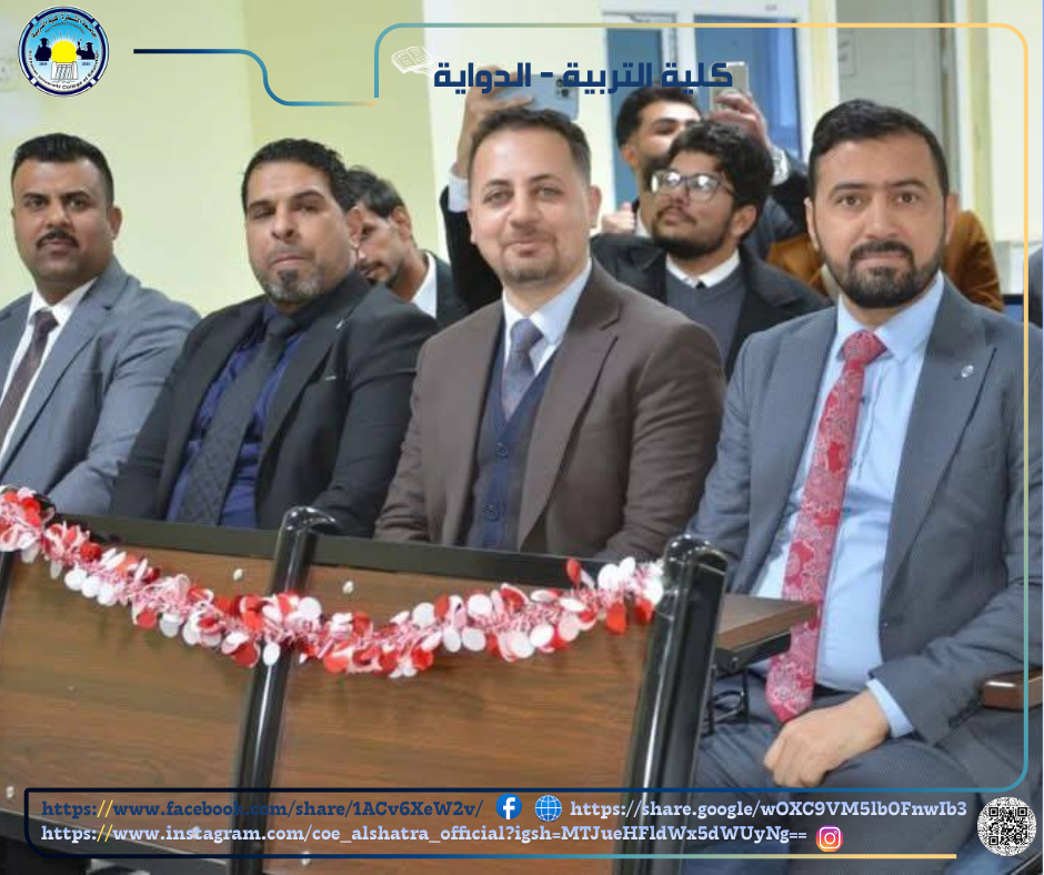 أقامت كلية التربية في الدواية – جامعة الشطرة احتفالية تعارف مميزة لطلبة المرحلة الأولى لقسمي اللغة الإنكليزية والفيزياء، بحضور السيد المساعد العلمي لرئيس جامعة الشطرة أ.م.د فاضل محسن حمد ، وبإشراف مباشر من أ.م.د صفاء حسين علي عميد الكلية، وبمشاركة فاعلة من الكادر التدريسي في الكلية.