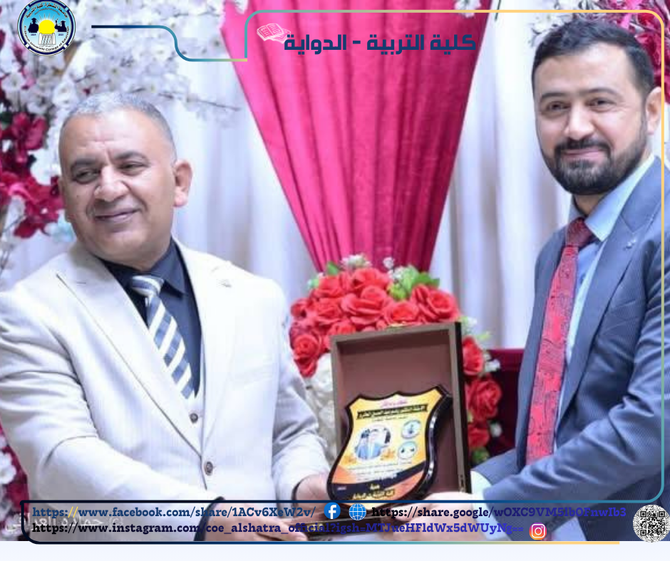 كما شهدت الاحتفالية تكريم السيد المساعد العلمي لرئيس الجامعة أ.م.د فاضل  محسن حمد، من قبل السيد عميد كلية التربية، تثمينًا لجهوده المباركة ودعمه المتواصل للأنشطة العلمية والأكاديمية في الجامعة.