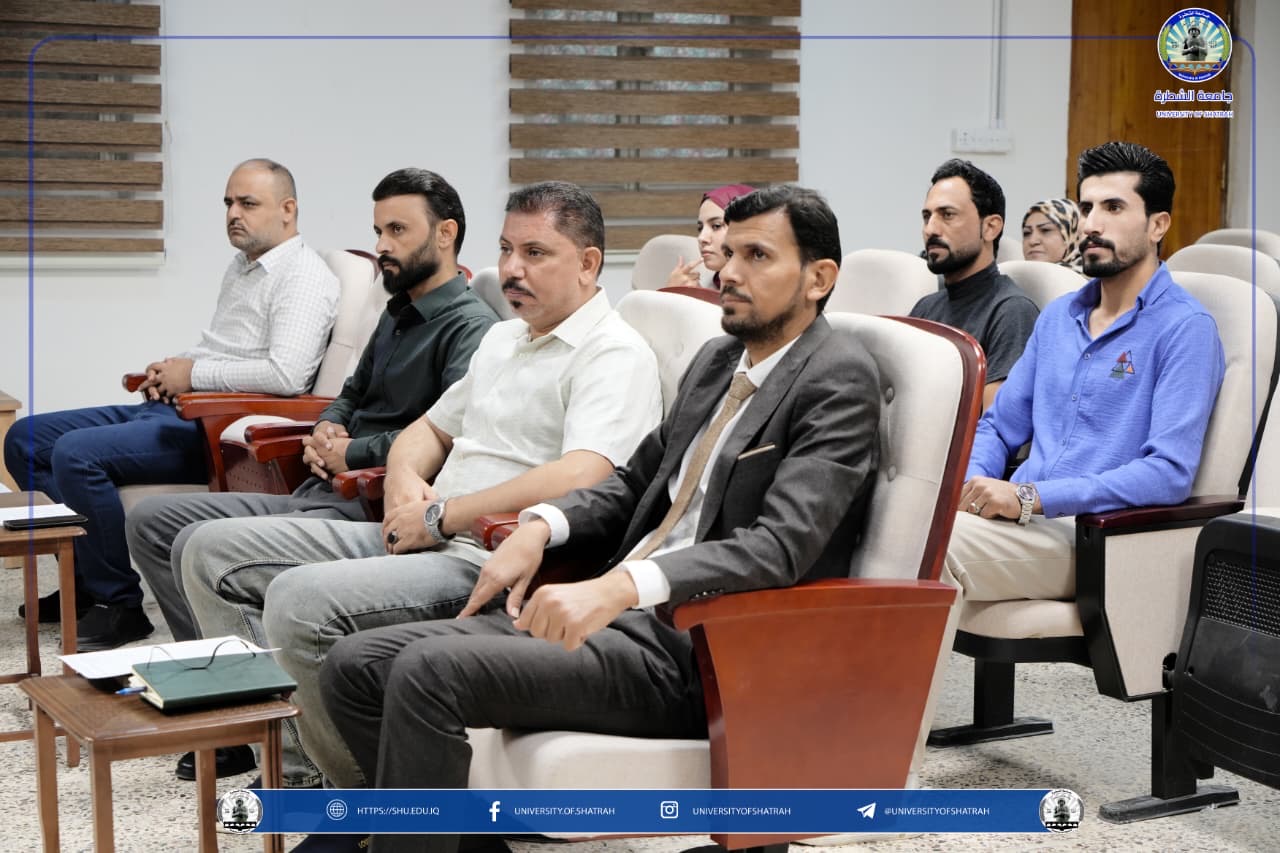 برعاية الأستاذ الدكتور باسم عبد الحسين جار الله رئيس جامعة الشطرة المحترم، ووفقًا لمقتضيات المصلحة العامة، نظم قسم التسجيل وشؤون الطلبة في الجامعة يوم الثلاثاء 14 تشرين الأول 2025، ورشة عمل بعنوان "تعليمات وضوابط القبول في الدراسة المسائية"، على قاعة المناقشات في الجامعة، بحضور السادة معاوني العمداء ومسؤولي شعب التسجيل وشؤون الطلبة في الكليات.
