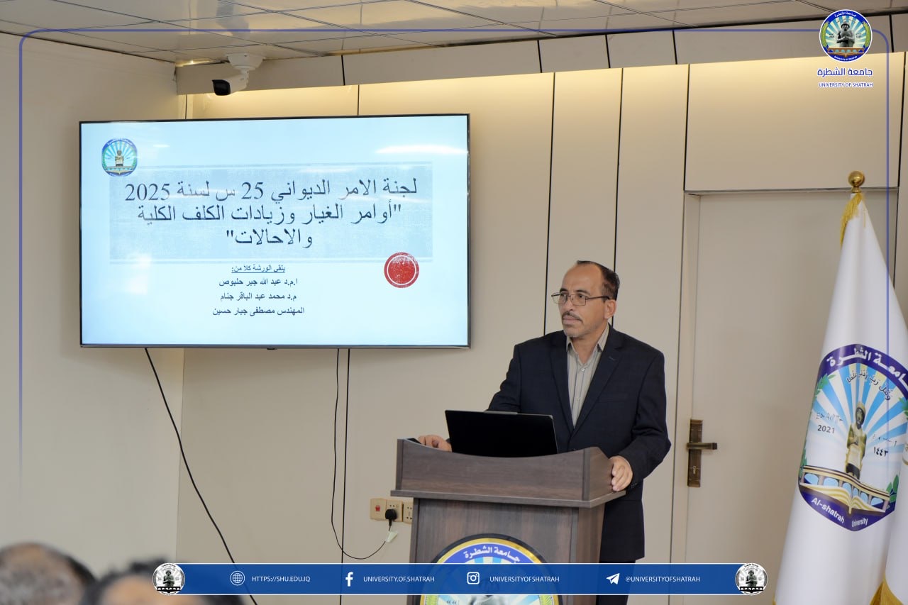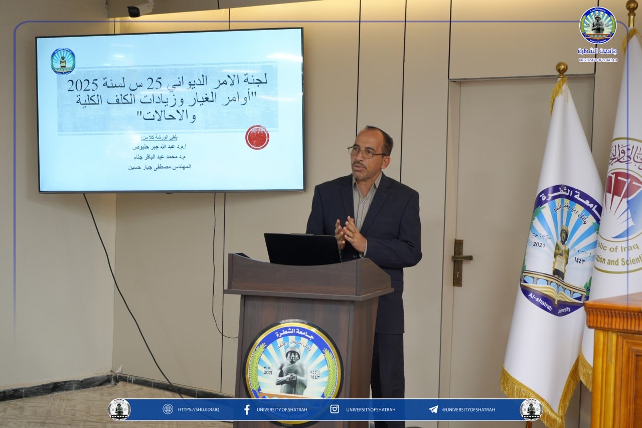 برعاية السيد رئيس جامعة الشطرة الأستاذ الدكتور باسم عبد الحسين جار الله المحترم، نظّم قسم الإعمار والمشاريع في رئاسة الجامعة ورشة عمل تخصصية بعنوان «التجاوز في أوامر الغيار والزيادات وتجاوز الكلف الكلية والمخالفات في المشاريع»، يوم الاثنين 29 كانون الأول 2025، في قاعة الشهيد أبو مهدي المهندس، وبمشاركة عدد من المختصين في الجوانب الهندسية والإدارية.